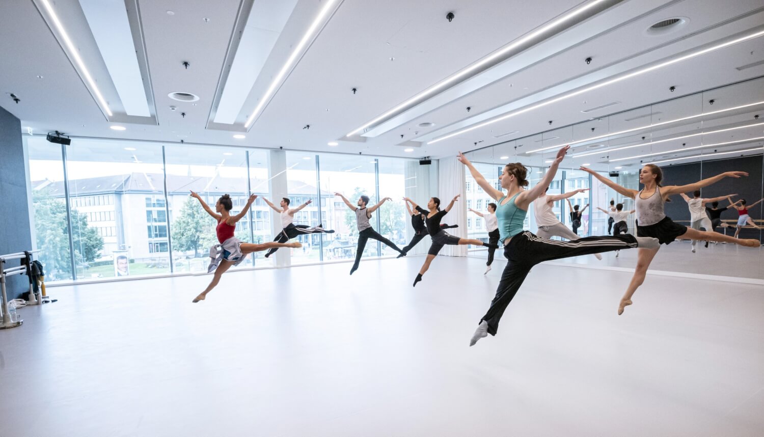 Tanzcompagnie beim Tanztraining im Ballettsaal © Nico Manger