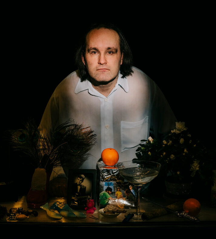 Max Edgar Freitag beim Covershooting im Bühnenbild zu „play boys”. Foto: Tobias Kruse